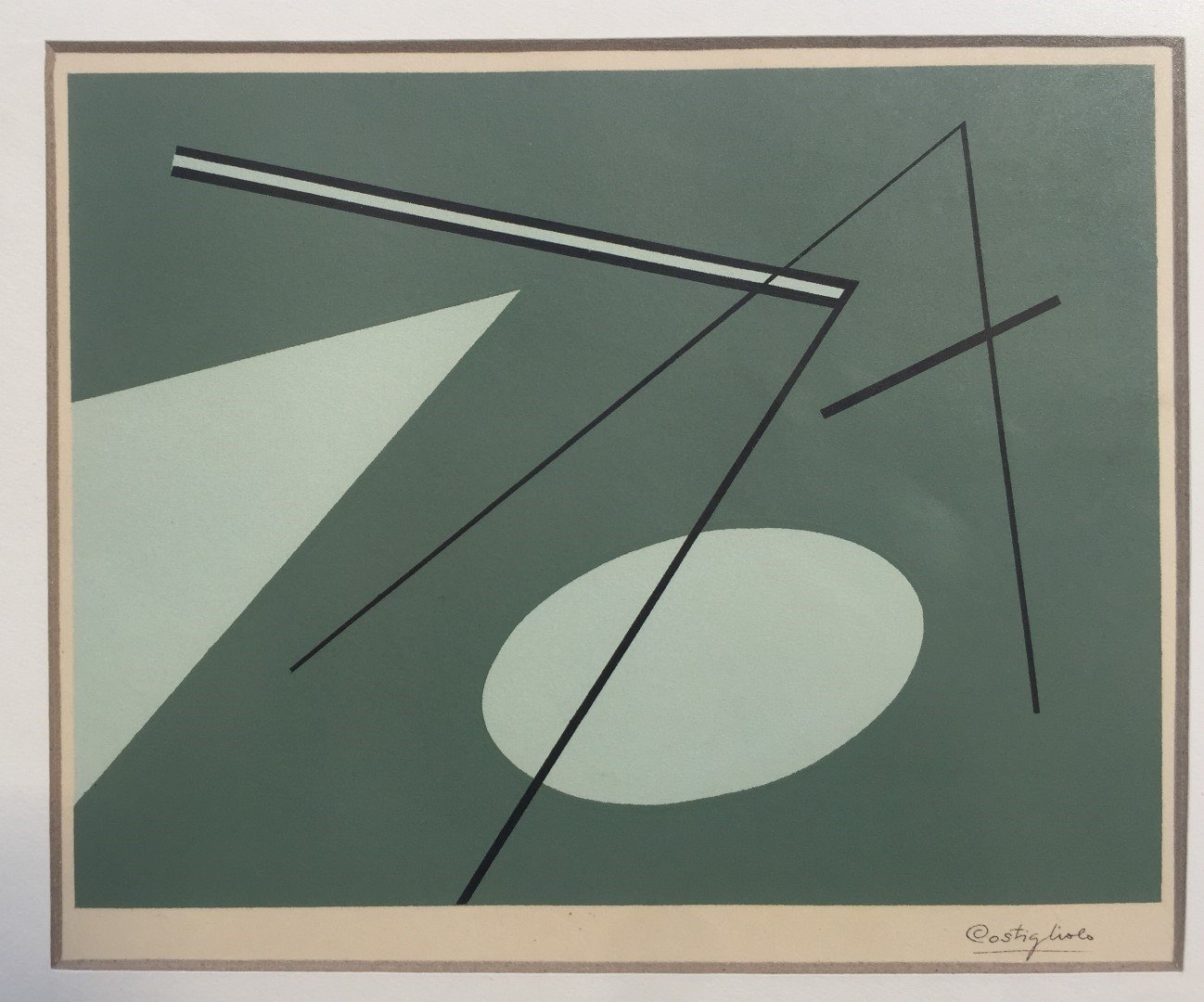 COSTIGLIOLO, José Pedro (escuela uruguaya, 1902-1985). Serigrafía. «Formas en verde y negro.» Firmado a tinta abajo a la derecha. 22 x 20.5 cm.