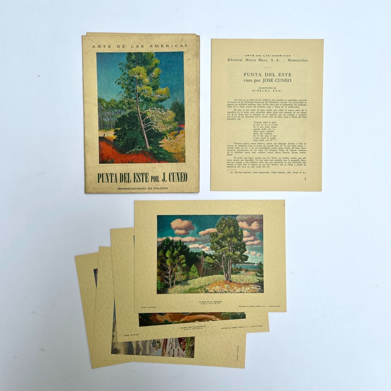 Lote de cuatro publicaciones relativas a Punta del Este. “Punta del Este. 65 acuarelas de Pierre Fossey”, “Punta del Este por José Cuneo. Reproducciones en colores”, “Punta del Este. Balneario El Tesoro” y “Punta del Este. 12 fotografías por José Suárez”.