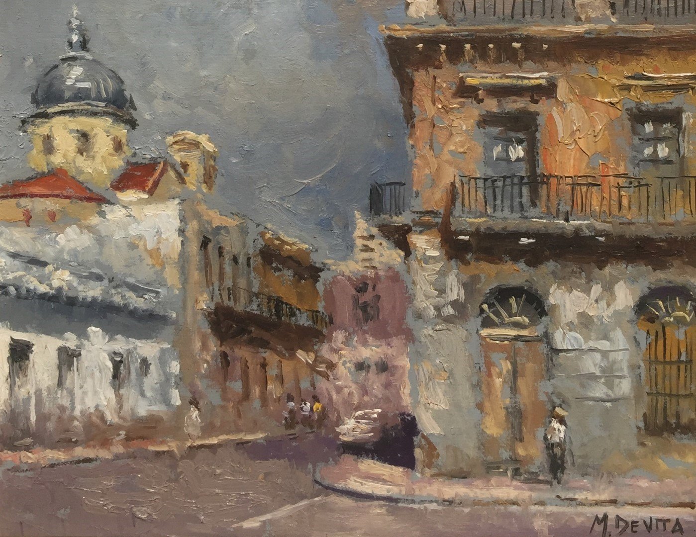 DE VITA, Miguel (escuela uruguaya, 1923-2004). Óleo sobre tela. «Calle de Montevideo.» Firmado abajo a la derecha. 19 x 24 cm.