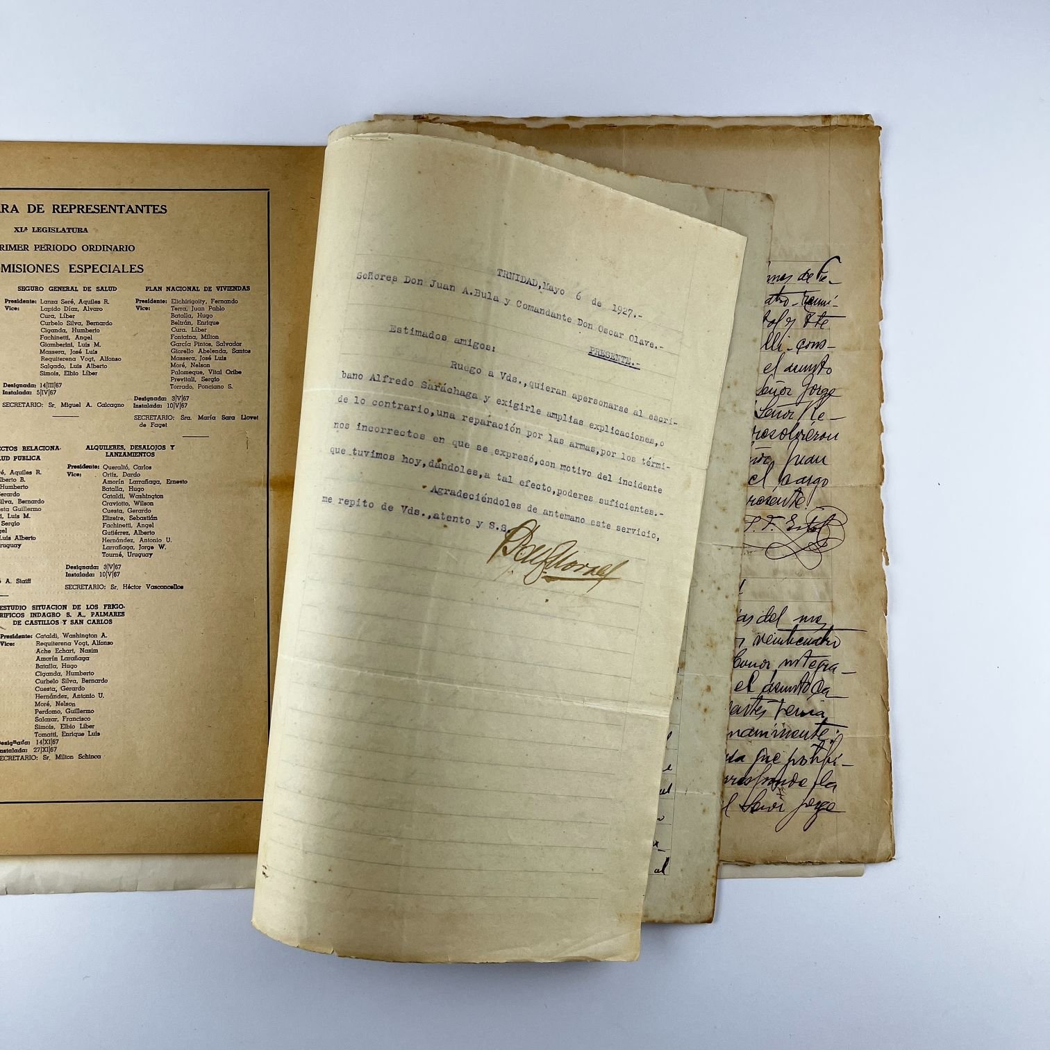 Actas manuscritas correspondientes al “lance caballeresco” ocurrido en el Teatro Unión de Montevideo en el año 1924 entre Jorge Carbonel y Migal y Remigio Antúnez Castellanos. 6 folios.