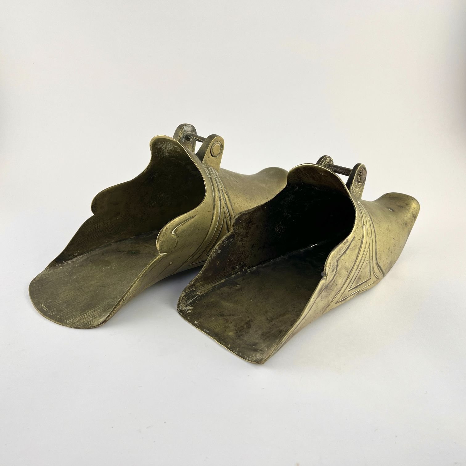 Dos estribos tipo zapato s. XIX, en bronce. Largos 31 y 28 cm.