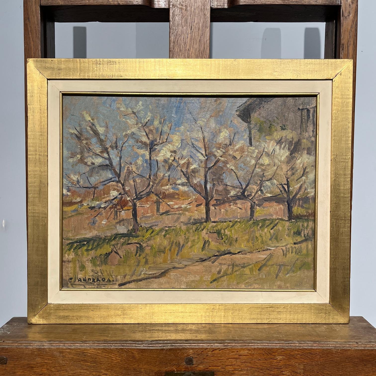 ELSA ANDRADA (Escuela uruguaya, 1920-2010) Óleo sobre tela «Árboles de la quinta Mendizábal» Firmado abajo a la izquierda 45 x 34 cm