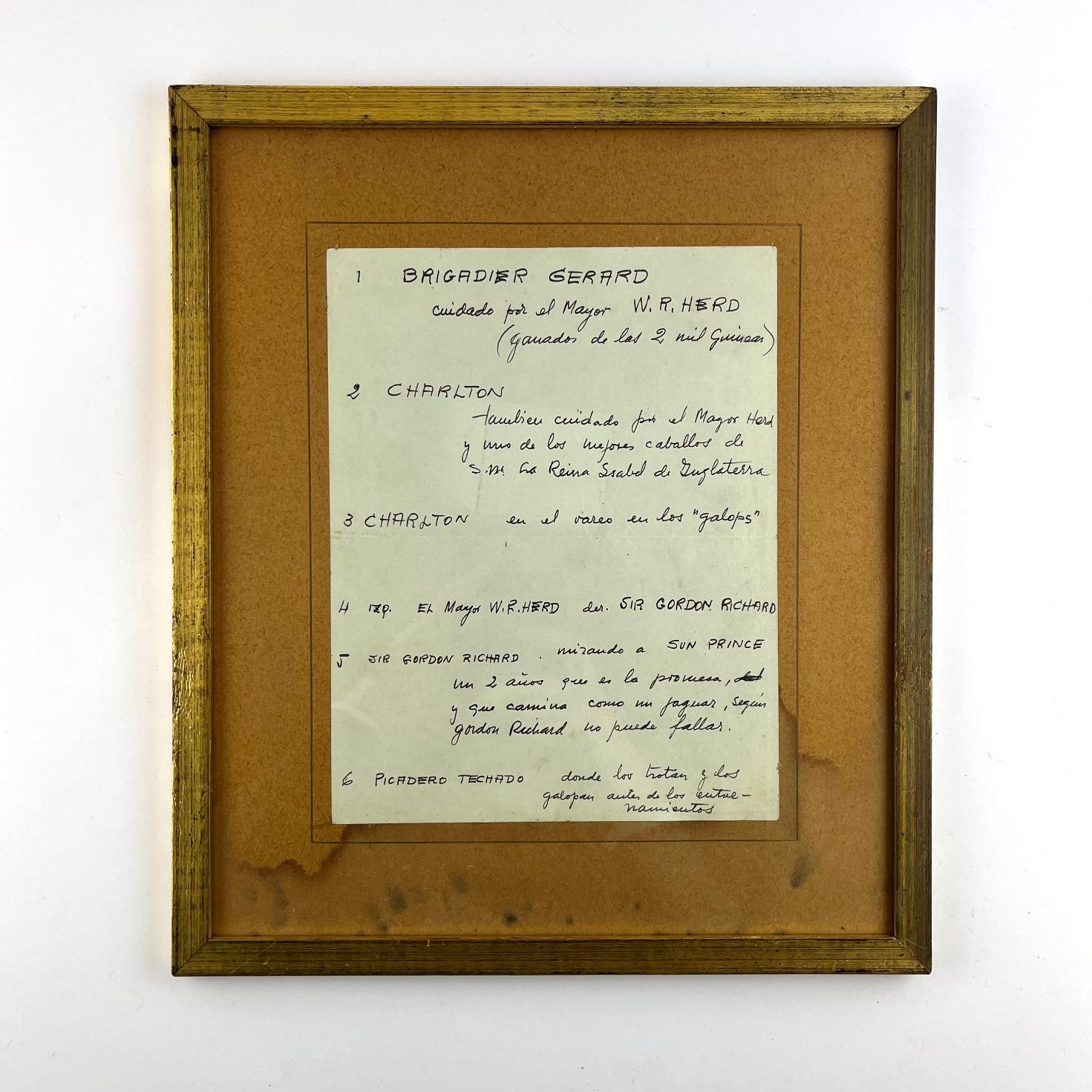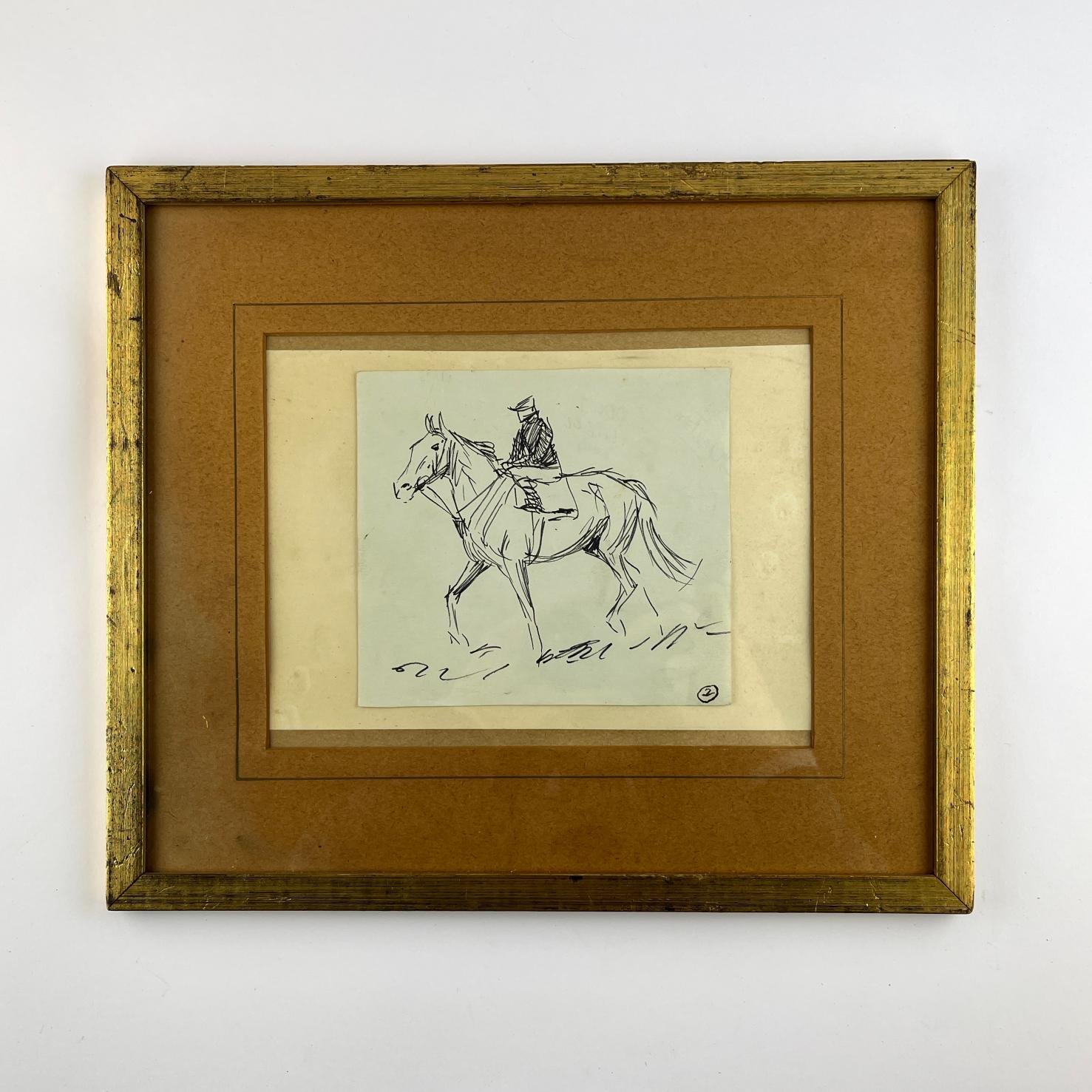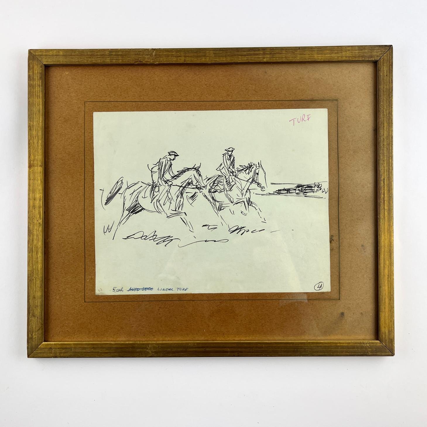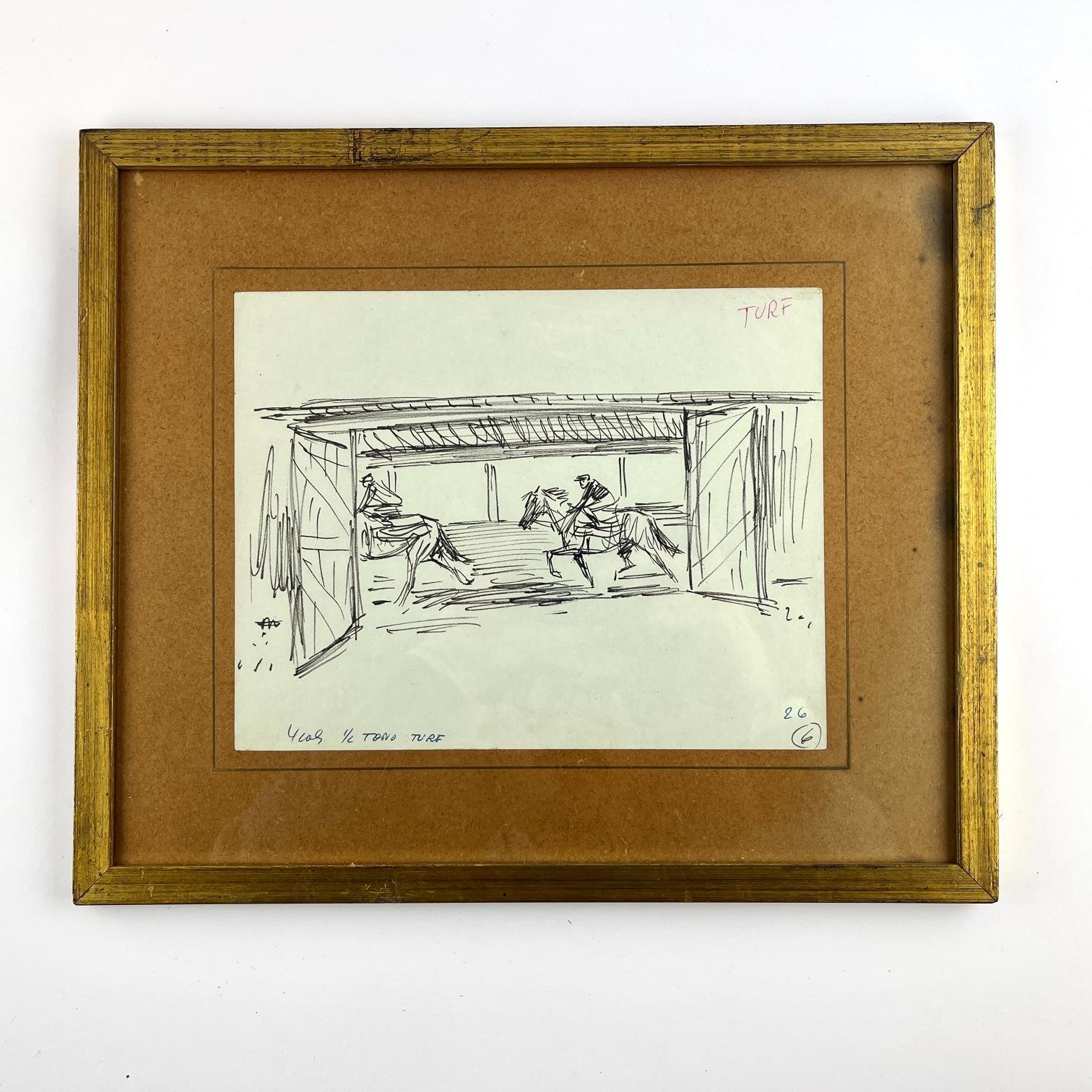 ENRIQUE CASTELLS CAPURRO (escuela uruguaya, 1913-1987). Conjunto de seis obras. Tinta sobre papel. Escenas de turf: «Brigadier Gerard», «Charlton», «Charlton en el vareo», «W.R Herd”, «Sir Gordon Richard» y «Picadero techado» 17,5 x 23 cm.