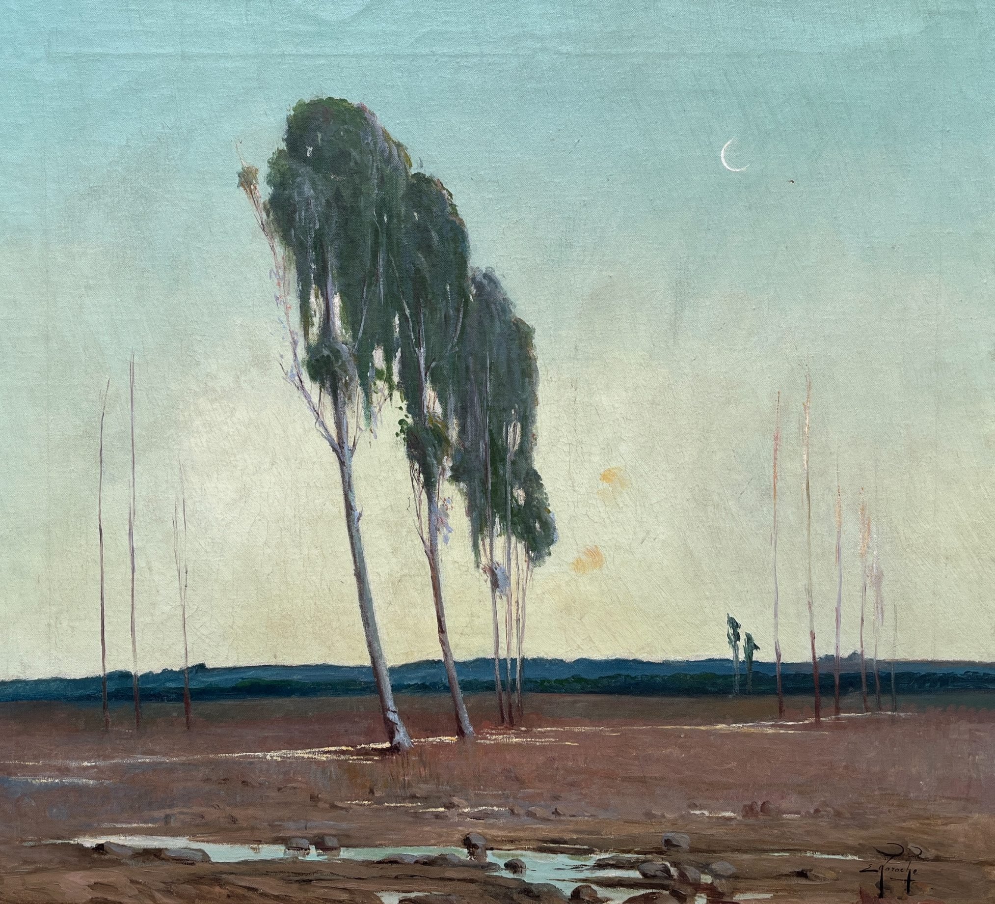 ERNESTO LAROCHE (Escuela uruguaya, 1879-1940) Óleo sobre tela “Paisaje de campo” Firmado abajo a la derecha y al dorso 72 x 80 cm