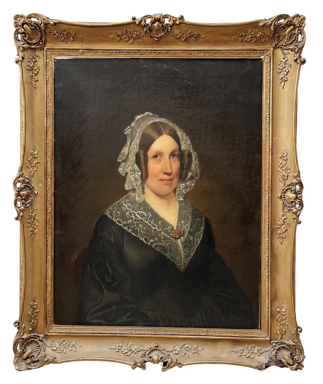 HENRY DE NOBELE (Escuela belga, 1820-1870) Óleo sobre tela «Retrato de Amélie Verlinde» Firmado y fechado «1842» al centro a la izquierda 81 x 65 cm»