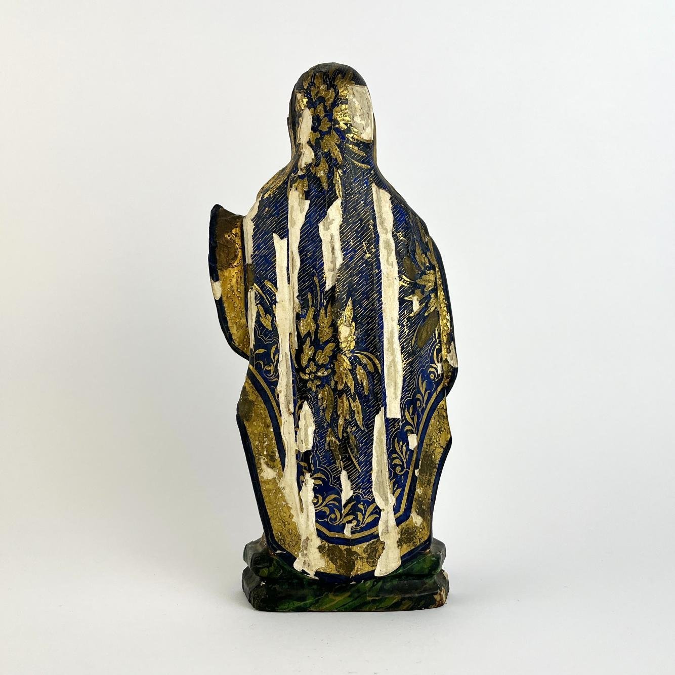 Escultura bahiana s. XVIII en madera tallada, policromada y dorada sobre estuco, con corona en plata. «Virgen María.» Alto 26 cm.