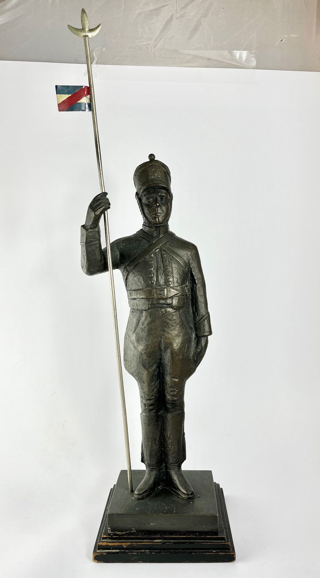 Escultura en bronce pátina oscura. «Blandengue.» Alto 55 cm. Presentada sobre peana en madera ebanizada. Alto total 58 cm.