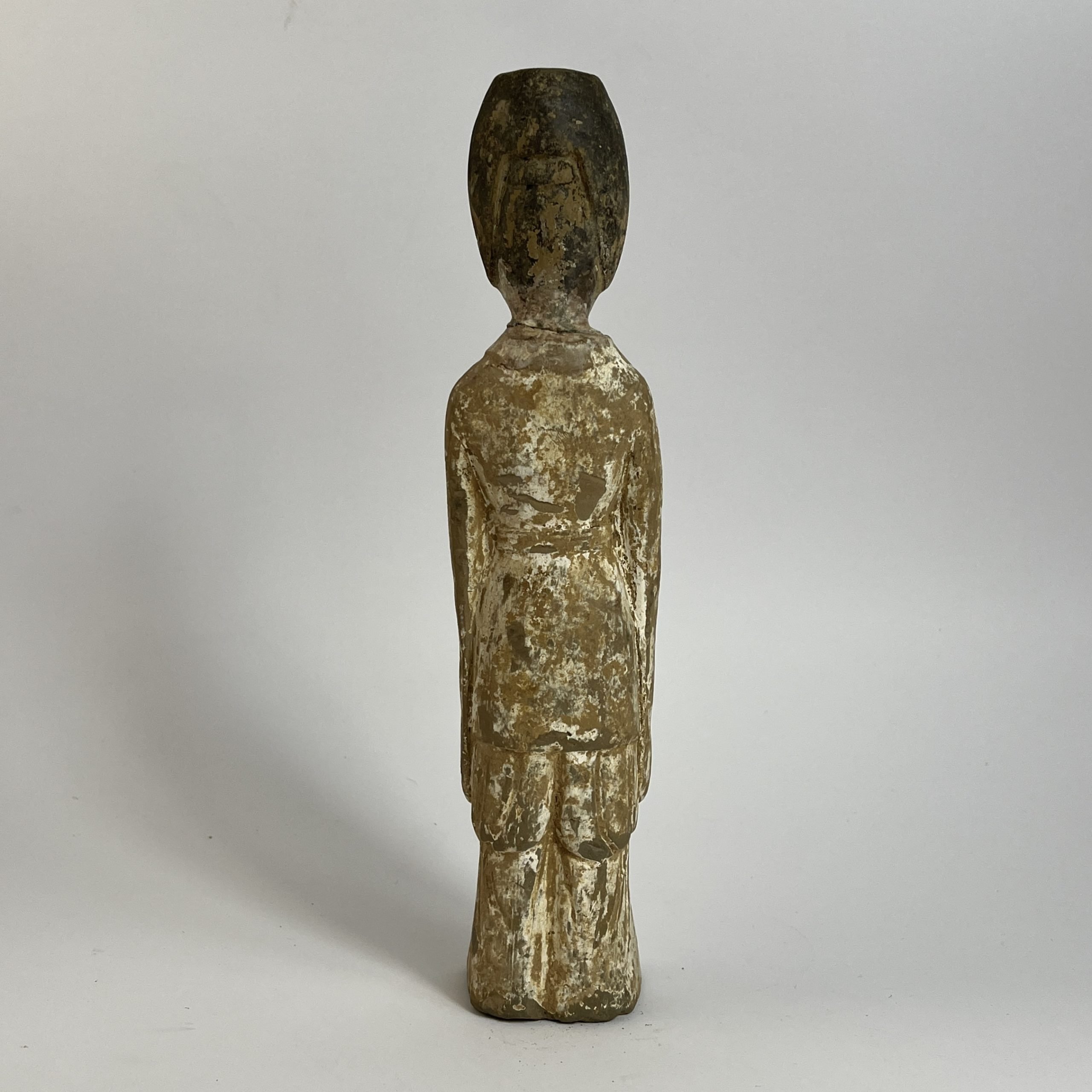 Escultura china en terracota con restos de policromía. «Dama.» Dinastía Wei del Norte, 386 a 534 d.C. Alto 25 cm.