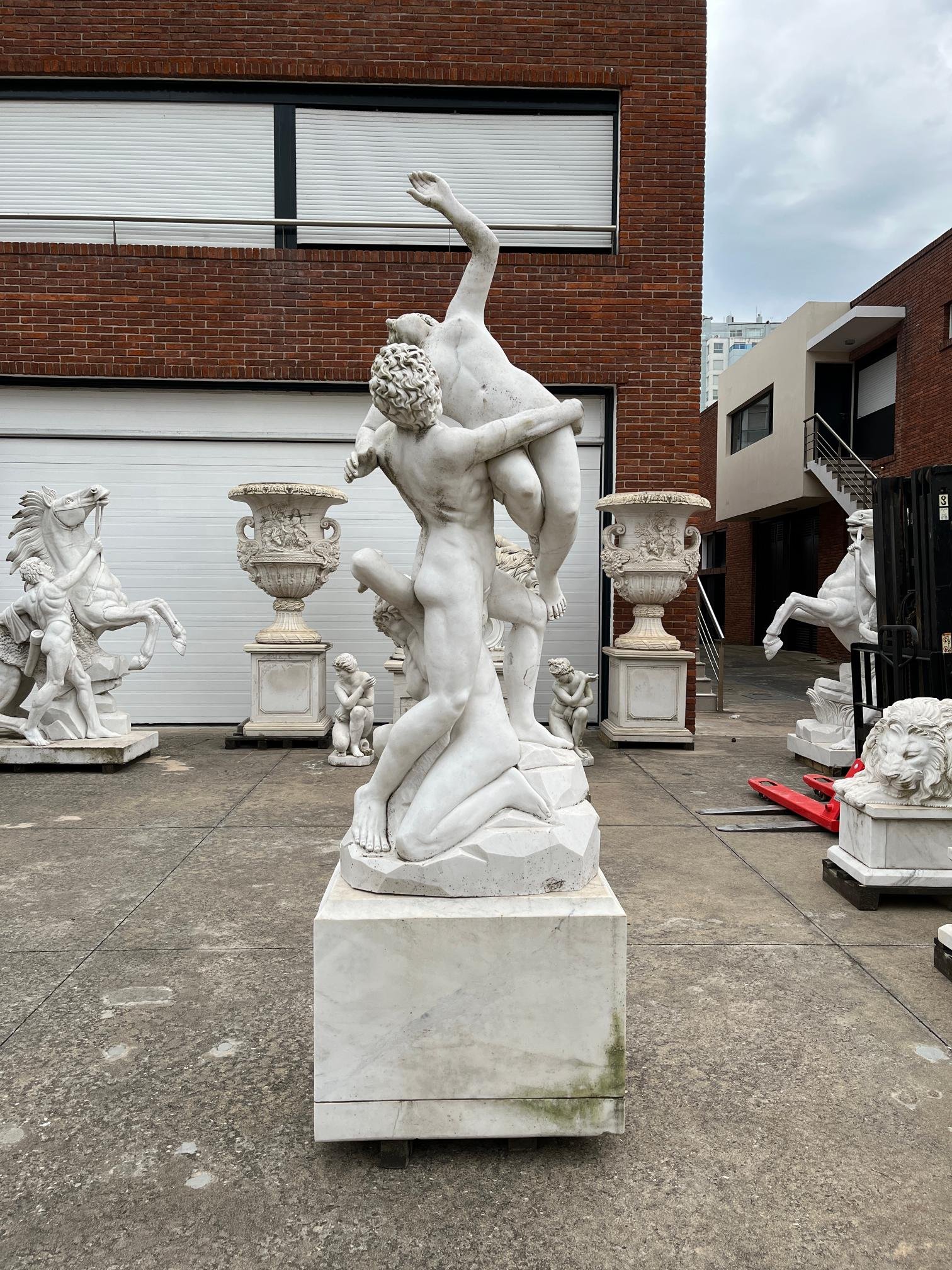 Escultura en mármol blanco veteado. «Rapto de las sabinas.» Alto 190 cm. Base 70 x 50 cm.