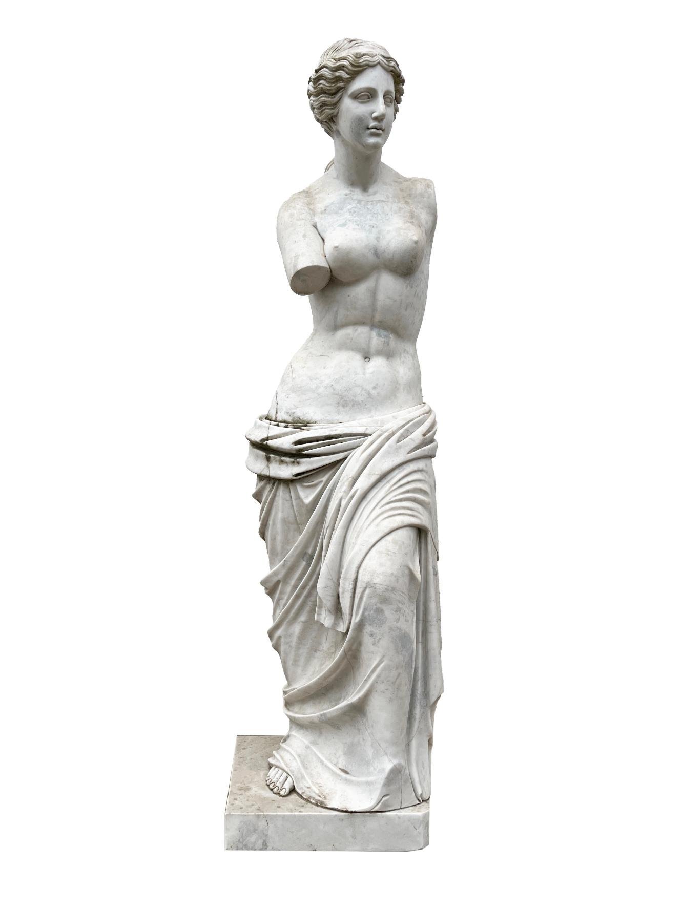 Escultura en mármol blanco veteado. «Venus de Milo.» Alto 183 cm. Ancho 47 cm. Profundidad 40 cm.