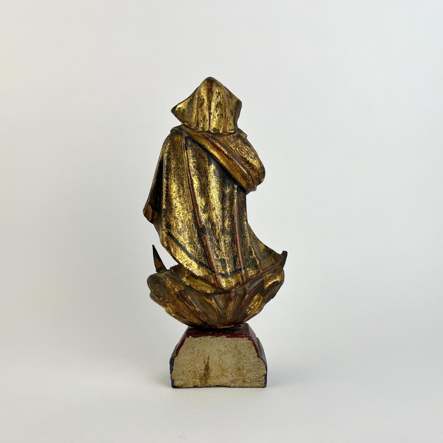 Escultura hispanoamericana s. XVIII en madera tallada y dorada sobre estuco » Virgen María». Alto 20 cm