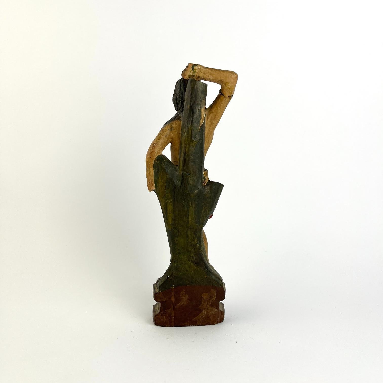 Escultura hispanoamericana s. XVIII en madera tallada y policromada «Cristo en la columna». Alto 21 cm