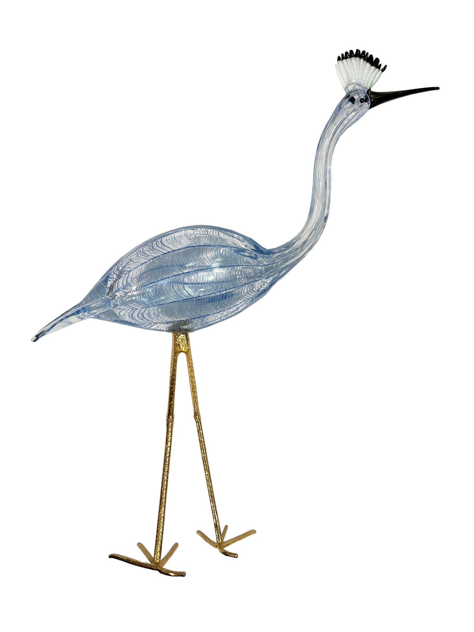 Escultura italiana en cristal de Murano y metal dorado. «Garza.» Alto 73 cm.