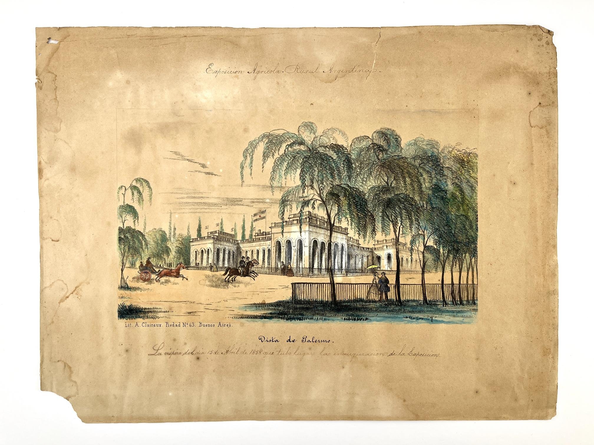 Estamos ante el único registro de la primera exposición rural realizada en Argentina por iniciativa de D. F. Sarmiento, Gervasio A. de Posadas y Eduardo Olivera. La imagen fue reproducida por Juan Carlos Grassi acudiendo a un ejemplar sin colorear preservado en la Biblioteca de la Sociedad Rural Argentina (1).