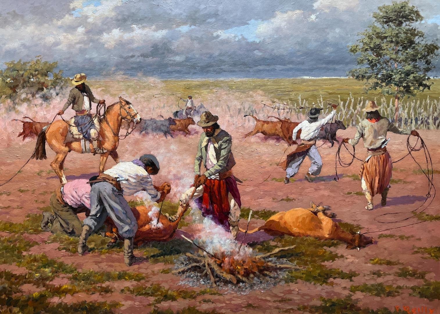 FEDERICO REILLY (Escuela uruguaya, 1922-2013) Óleo sobre tela «La yerra» Firmado abajo a la derecha 71 x 98 cm