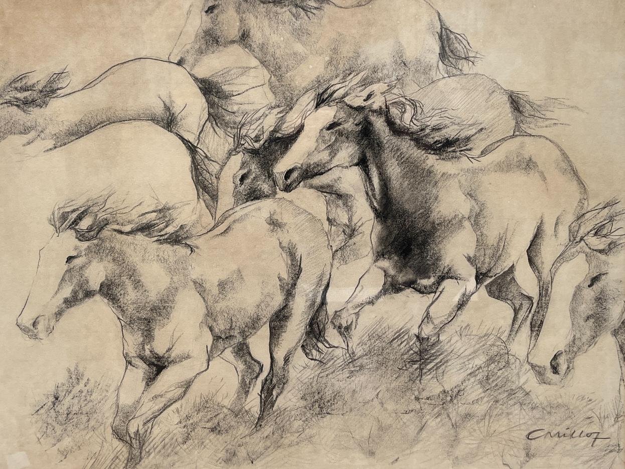 Firma ilegible Carbonilla sobre papel «Tropilla» Firmado abajo a la derecha 50 x 65 cm