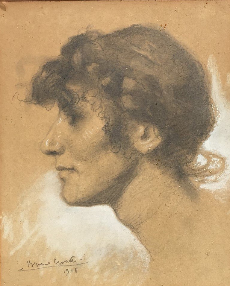 Firma ilegible. Carbonilla y acuarela sobre papel. “Dama.” Firmado y fechado “1913” abajo a la derecha. 30 x 25 cm.