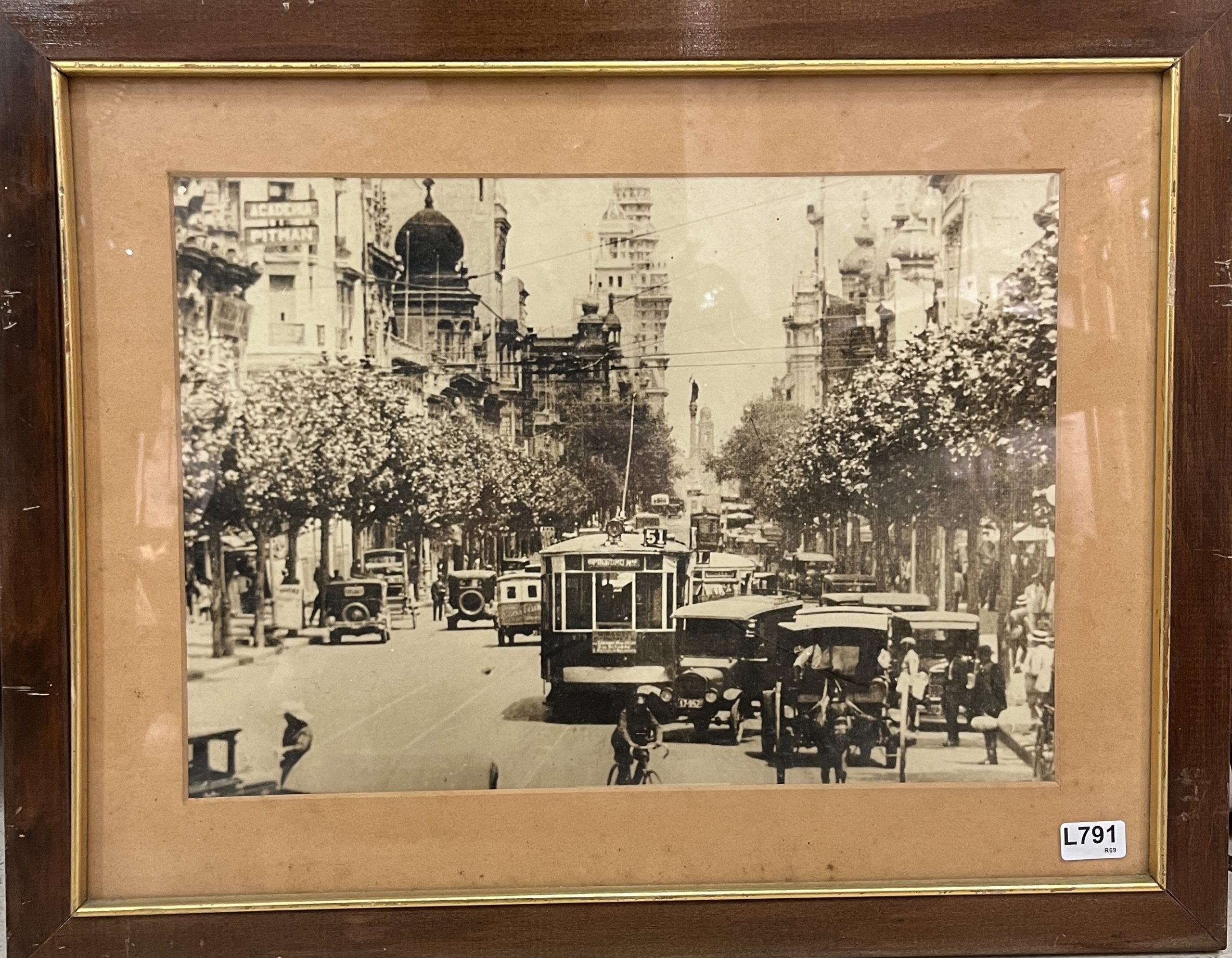 Fotografía. “Vista de la Avenida 18 de Julio de Montevideo hacia 1930.” 24 x 34 cm. Enmarcada.
