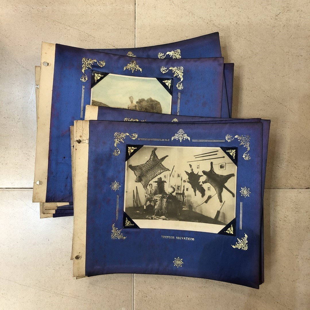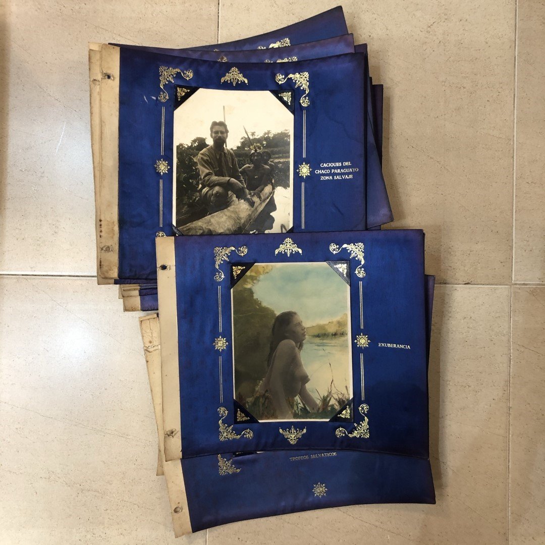 Antiguo álbum paraguayo con 18 fotografías en blanco y negro coloreadas relativas al Chaco, sus indígenas y la cacería. 24 x 18 cm. Presentado en bolso de cuero.