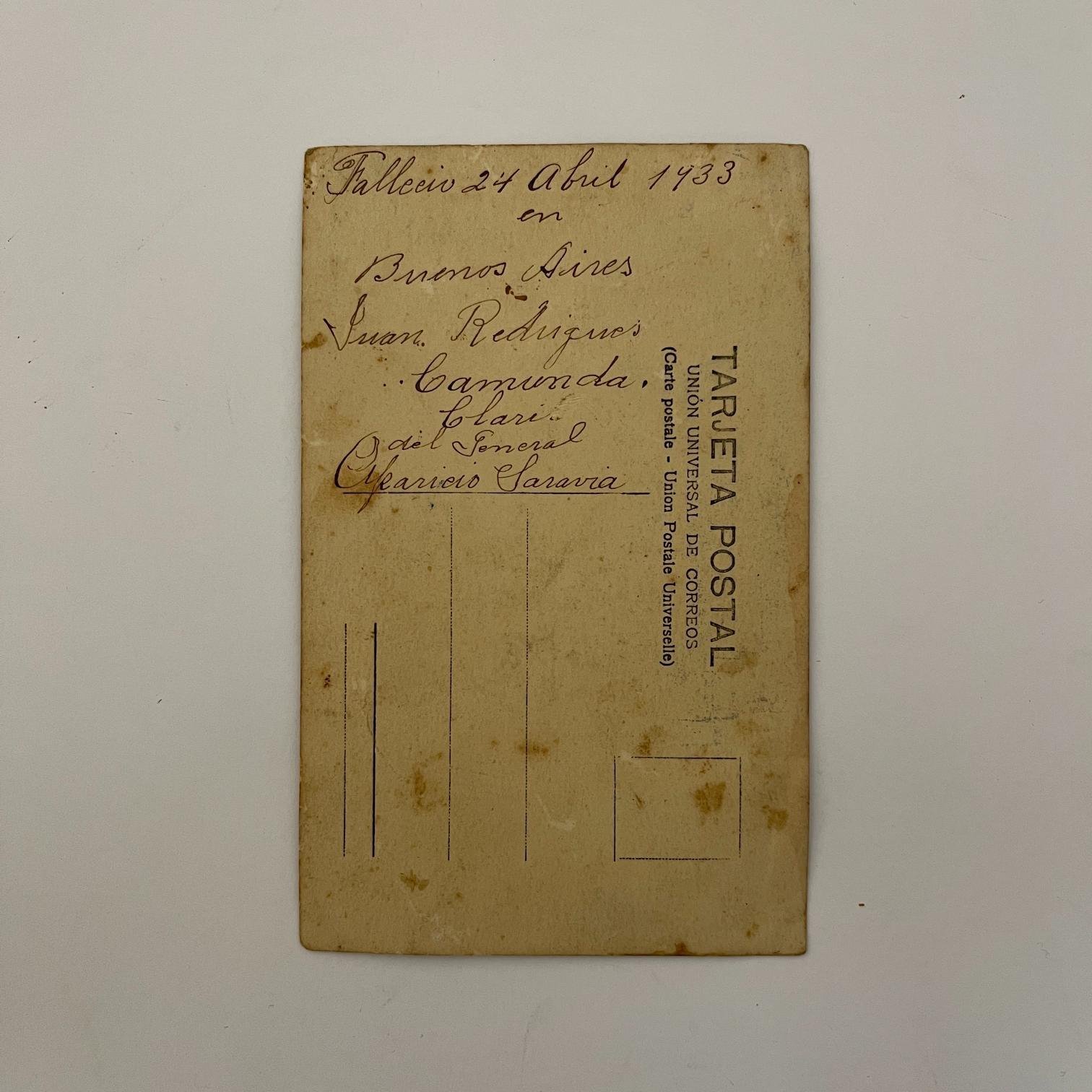 Fotopostal. «Juan Rodríguez Camunda, clarinete del Gral. Aparicio Saravia.» 16 x 10 cm.