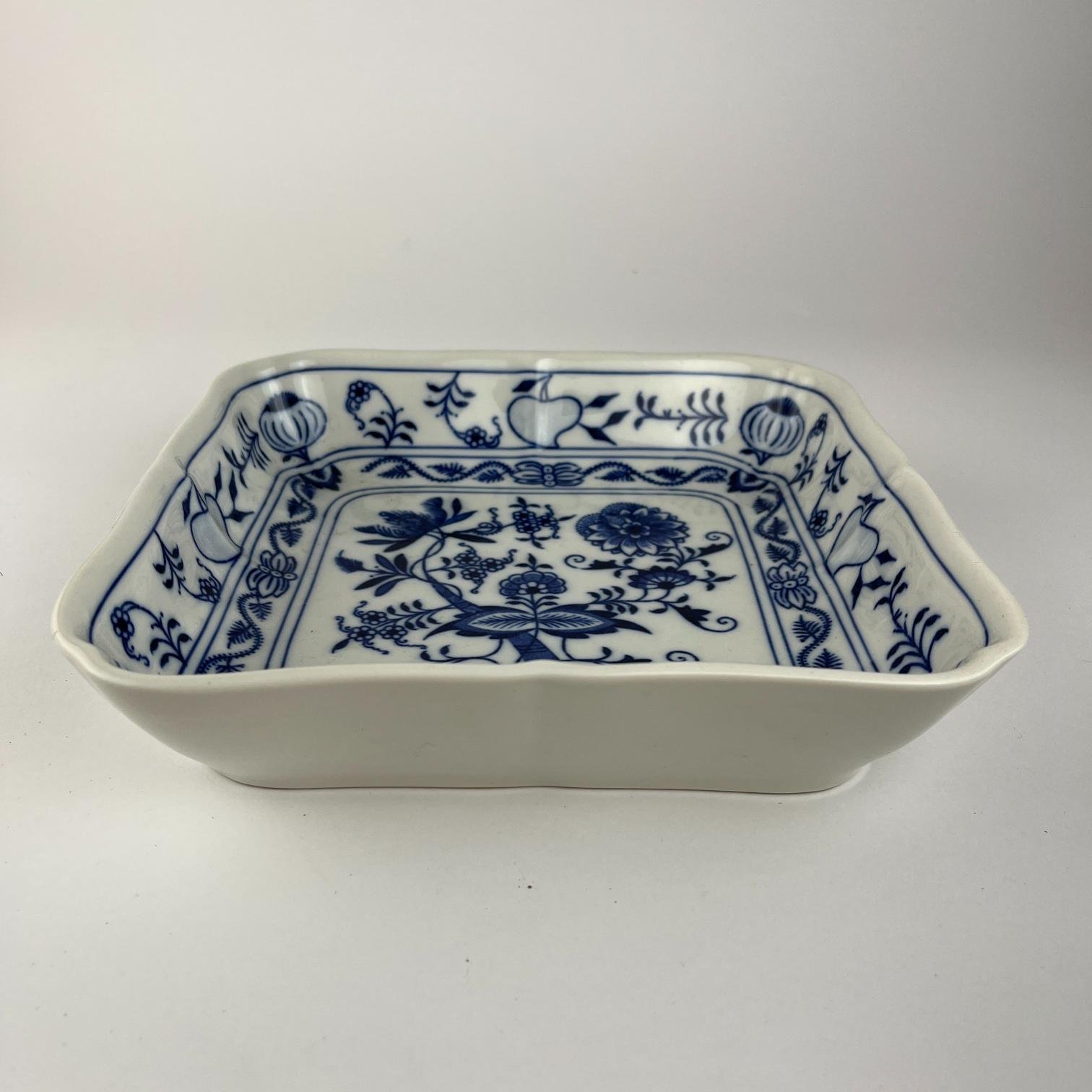 Fuente cuadrada en porcelana checoslovaca diseño Onion. 21 x 21 x 4,5 cm