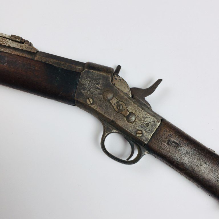 Fusil Remington Rolling Block transformado a mosquete, calibre 11 mm modelo «patria» argentino. Caño marcado «Modelo Argentino 1876 E.N.».