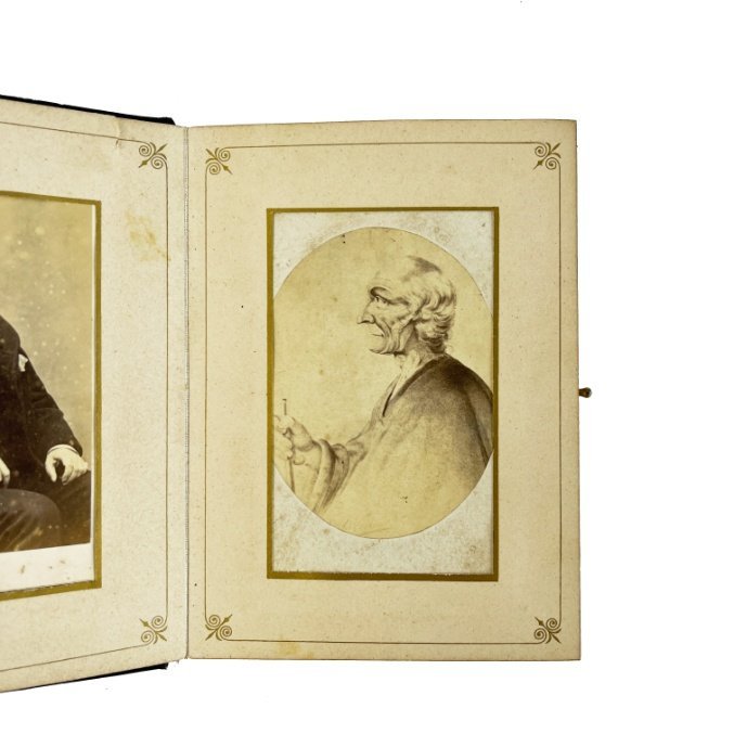 En esta selecta colección decimonónica se conjugan a la perfección, la novedad iconográfica que desempeñaron a partir de 1860 los populares retratos en el formato tarjeta de visita y, su continente natural, los lujosos álbumes surgidos a raíz de esta fulminante moda en todo el mundo.
