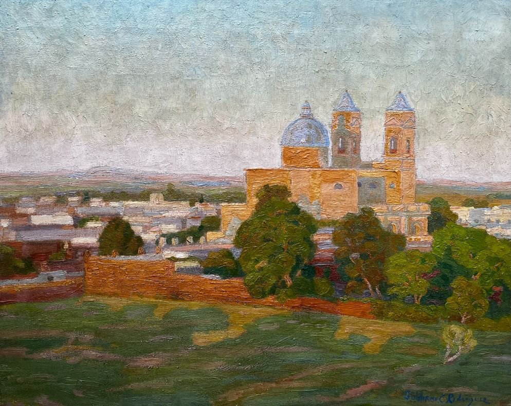 GUILLERMO RODRIGUEZ (1889-1959) «Vista de la ciudad y catedral de Maldonado» Óleo sobre tela Firmado abajo a la derecha 54 x 70 cm