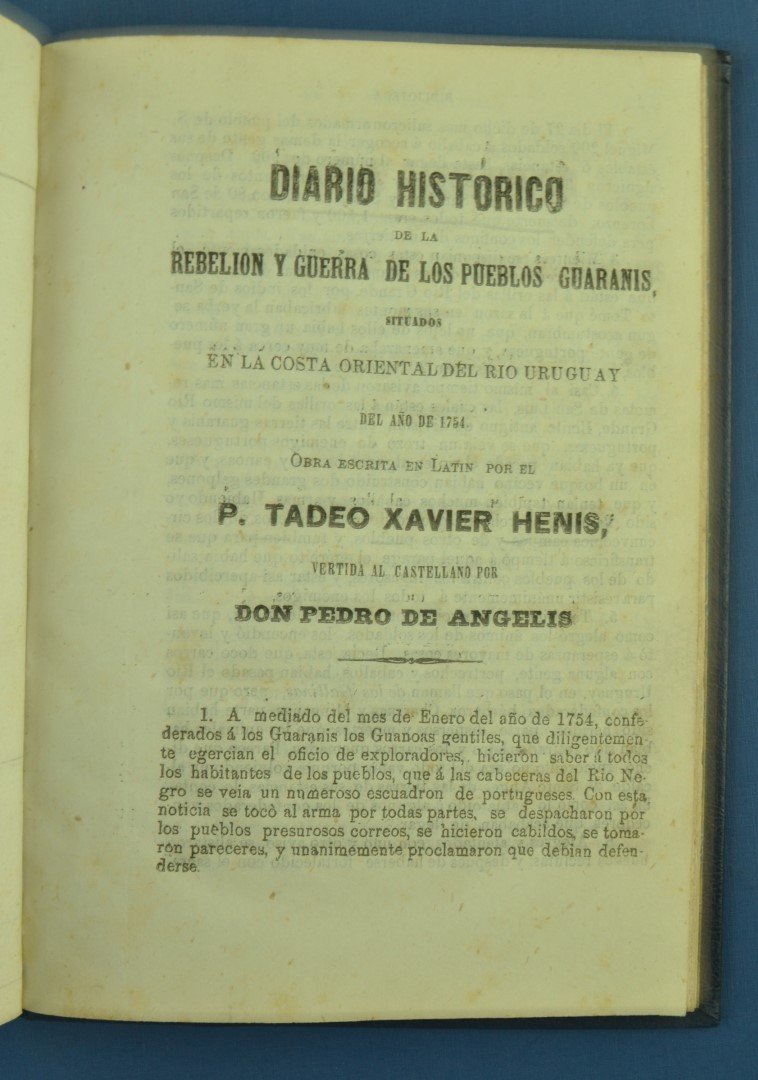 HENIS, Tadeo Xavier. P.: Diario histórico (…). Montevideo, Prensa Oriental. (Sin fecha.) Encuadernación en pleno cuero. Traducido al castellano por Pedro de Ángelis.