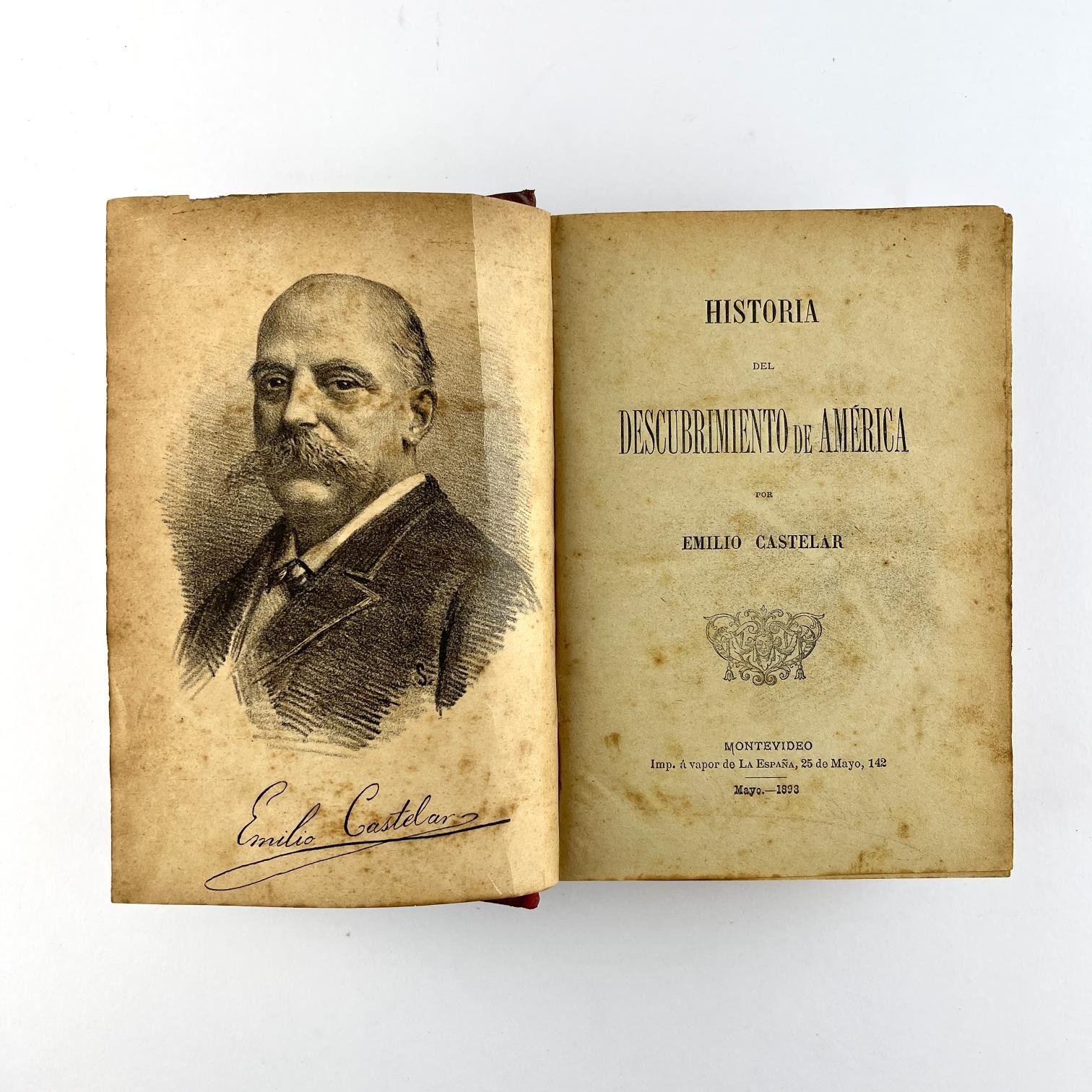 Emilio Castelar. «Historia del descubrimiento de América.» Imp. a vapor de la España. Montevideo, 1893. 286 pp.