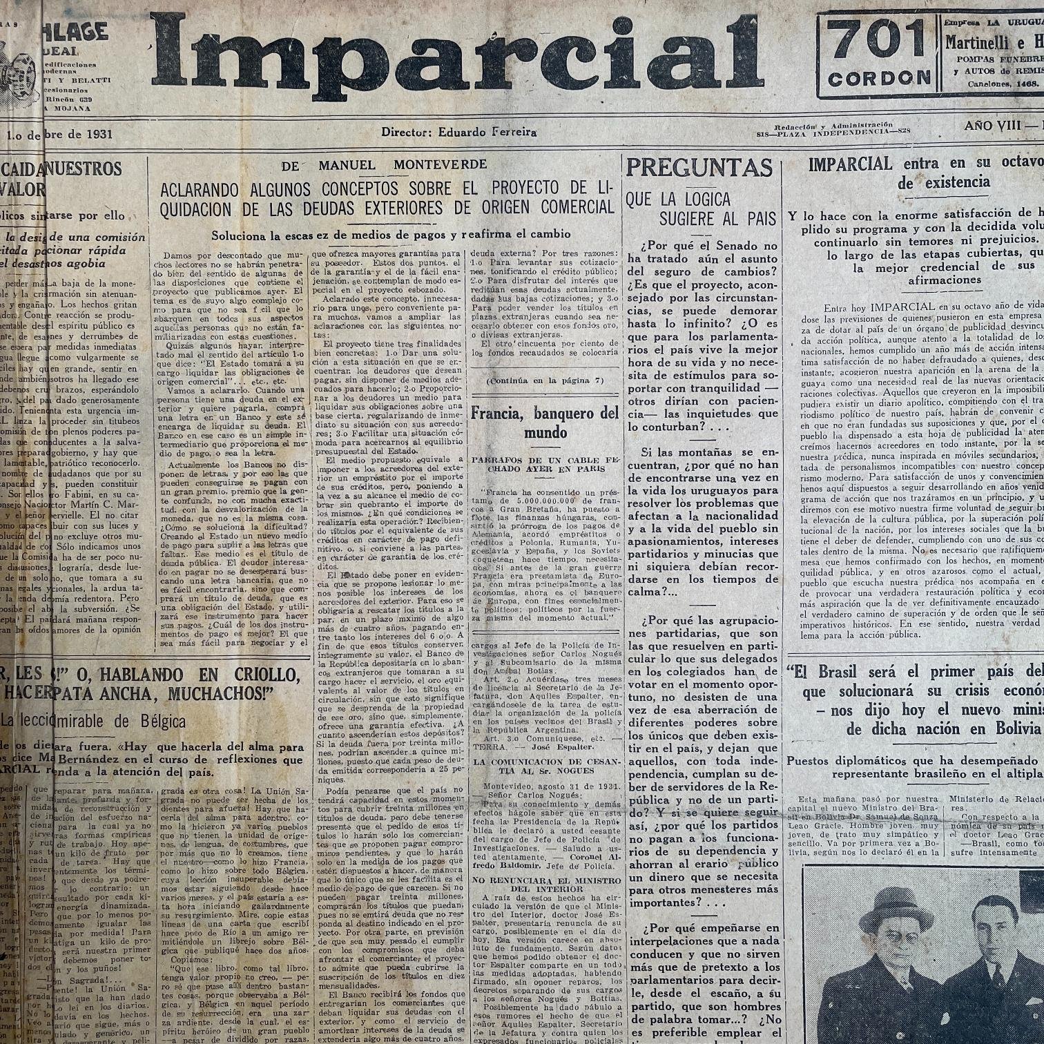 139 volúmenes Hojas Políticas de diarios 1948 1961. Archivo de la secretaría del Presidente, luego Consejero de Goberno, y luego Senador Luis Batlle Berres, de las secciones políticas de los diarios que se guardaban como archivo de consulta. Encuadernados con título e iniciales L. B. B. en lomo, corresponden a los diarios Acción, La Mañana, El Día, El Diario, El Debate, El País, El Plata, La Tribuna Popular, Diario Español, El Bien Público. Al inicio separados por diario y luego por mes. Falta algún volumen. No están los años 1951 ni 1954