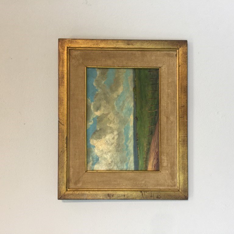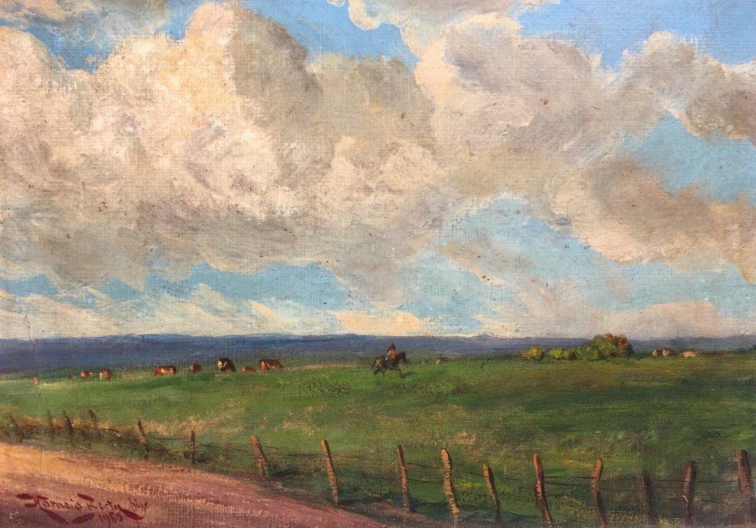 BERTA, Horacio (escuela uruguaya, 1888-1974). Óleo sobre tela pegada en fibra. «Paisaje de campo uruguayo.» Firmado y fechado «1960» abajo a la izquierda. 25 x 35 cm.