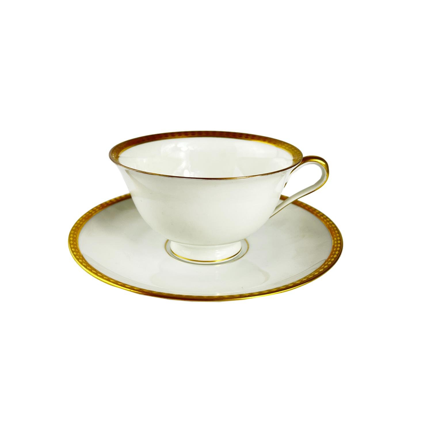 Juego de mesa alemán en porcelana Hutschenreuther con borde dorado. Compuesto por: