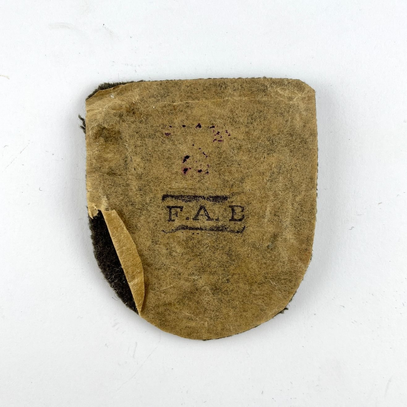 Insignia alemana en aluminio estampado. «1943. Kuban Lagunen Krymskaja Noworo Ssijsk.» 60 x 50 mm.