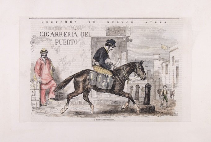 “A Buenos Ayres Milkman. Sketches in Buenos Ayres”. The Illustrated London News. 1858.