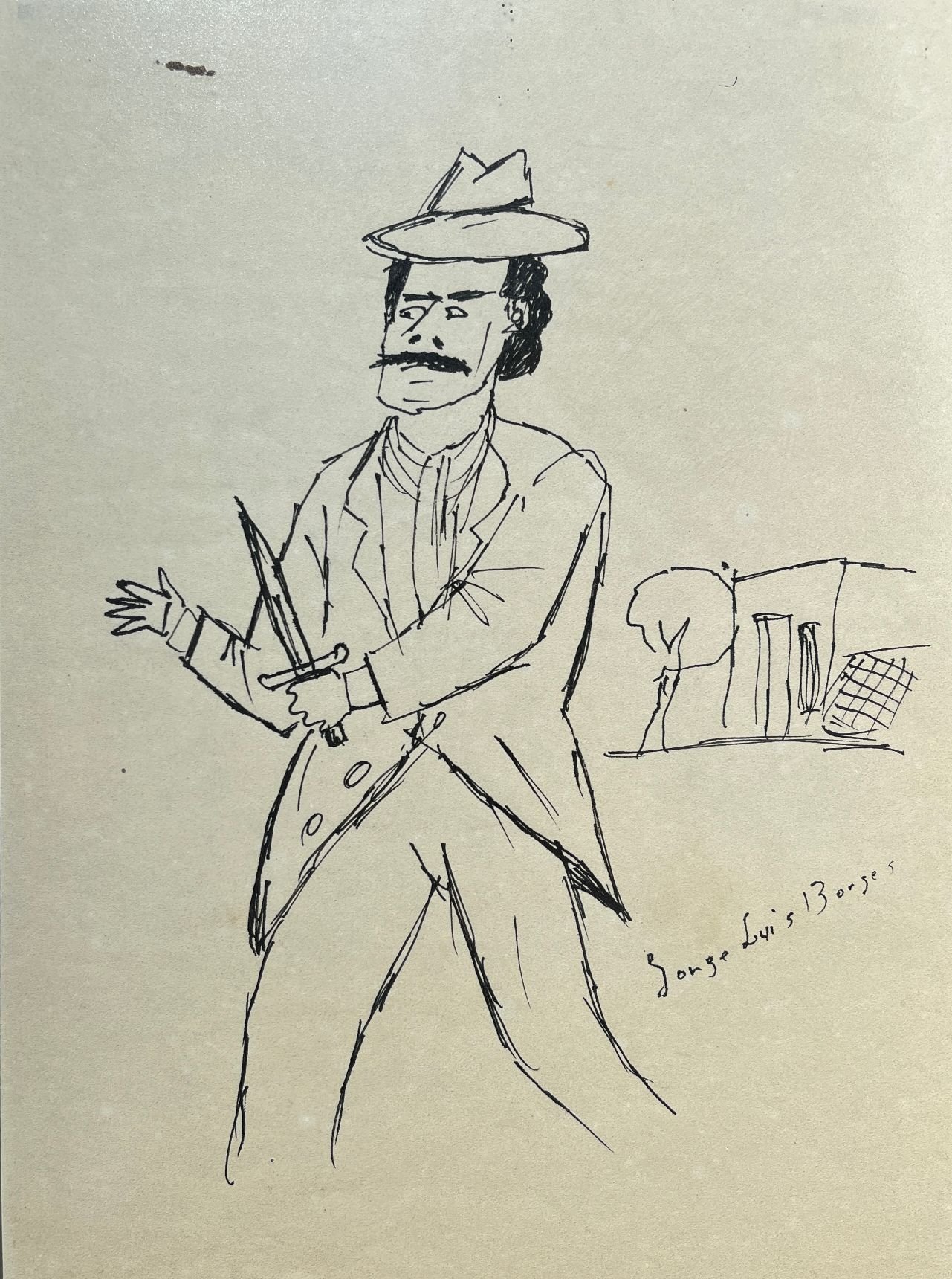 JORGE LUIS BORGES (Escuela argentina, 1899-1986) Tinta sobre papel «Un compadrito» Firmado abajo a la derecha 27.5 x 20.5 cm