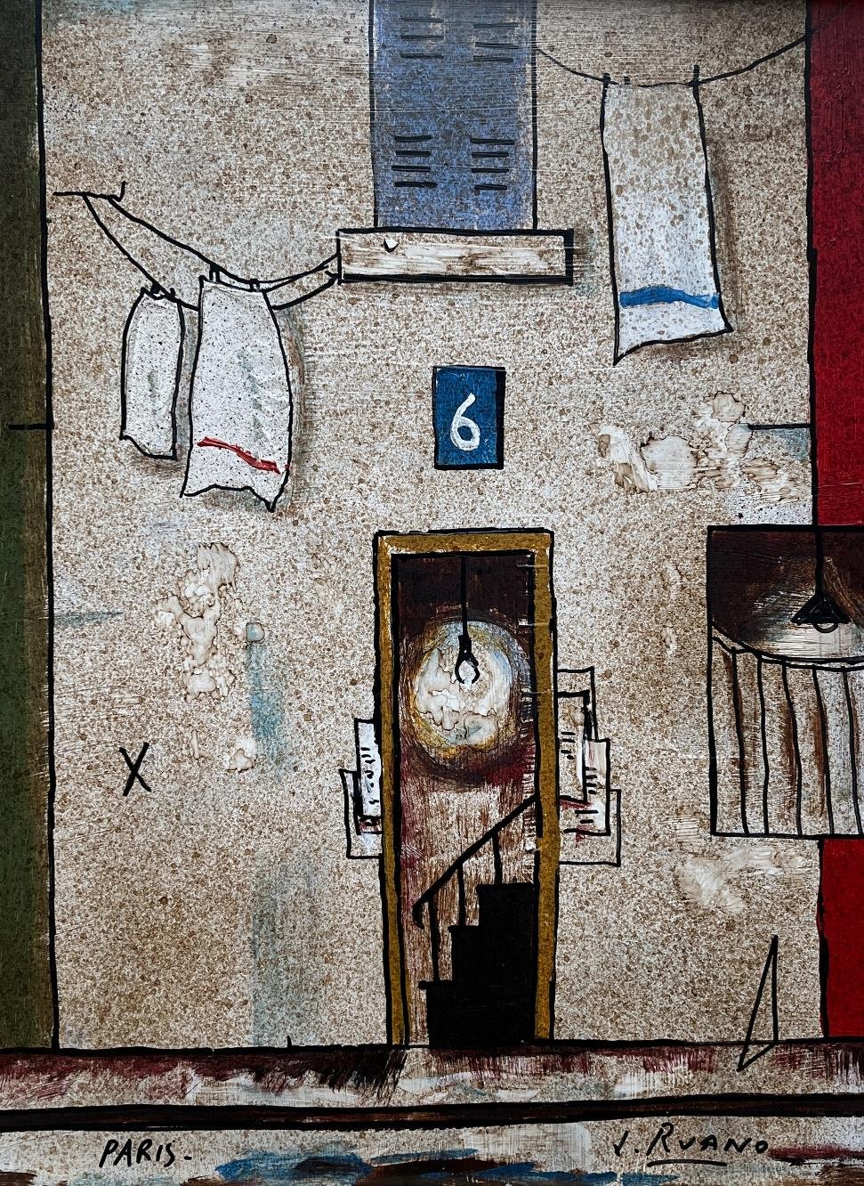 JORGE RUANO (Escuela uruguaya, 1952-2018) Acrílico sobre fibra «Calle de París» Firmado abajo a la derecha Situado «París» abajo a la izquierda 39 x 29 cm