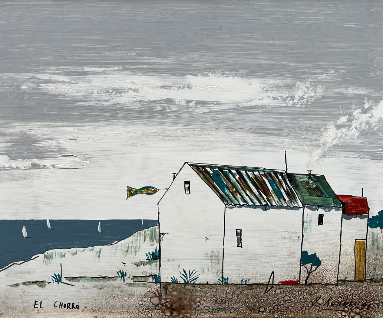 JORGE RUANO (Escuela uruguaya, 1952-2018) Acrílico sobre fibra «El Chorro» Firmado y fechado «96» abajo a la derecha Situado «El Chorro» abajo a la izquierda 50 x 59 cm