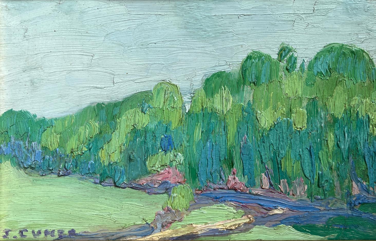 JOSÉ CUNEO (Escuela uruguaya, 1887-1977) Óleo sobre chapa “Sauces llorones” Firmado abajo a la izquierda 25 x 16 cm