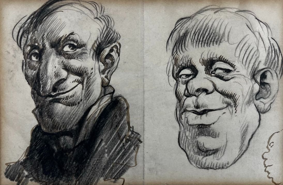 ZORRILLA DE SAN MARTÍN, José Luis (Uruguay, 1891-1975). Carbonilla y drypen sobre papel. “Caricaturas.” Sin firmar. 13.5 x 21 cm.