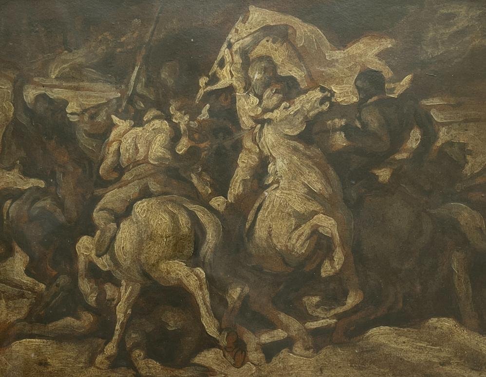 JOSÉ LUIS ZORRILLA DE SAN MARTÍN (Escuela uruguaya, 1891-1975) Óleo sobre cartón «Batalla» 26,5 x 24 cm