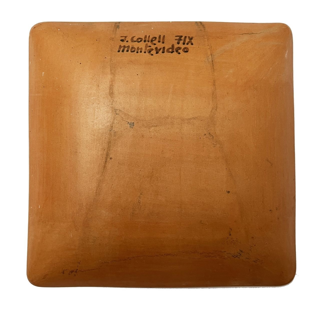 JOSEP COLLELL (1920-2011) Plato cuadrado en cerámica policromada «Dama cubista» Firmado, fechado y situado «Montevideo» al dorso 19 x 19 cm