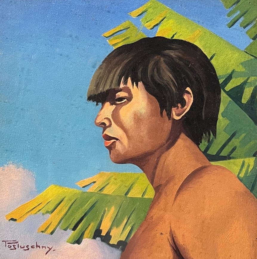 JOSEPH POLUSCHNY (Escuela ecuatoriana s. XIX) Óleo sobre cartón «Indígena» Firmado abajo a la izquierda 20 x 20 cm