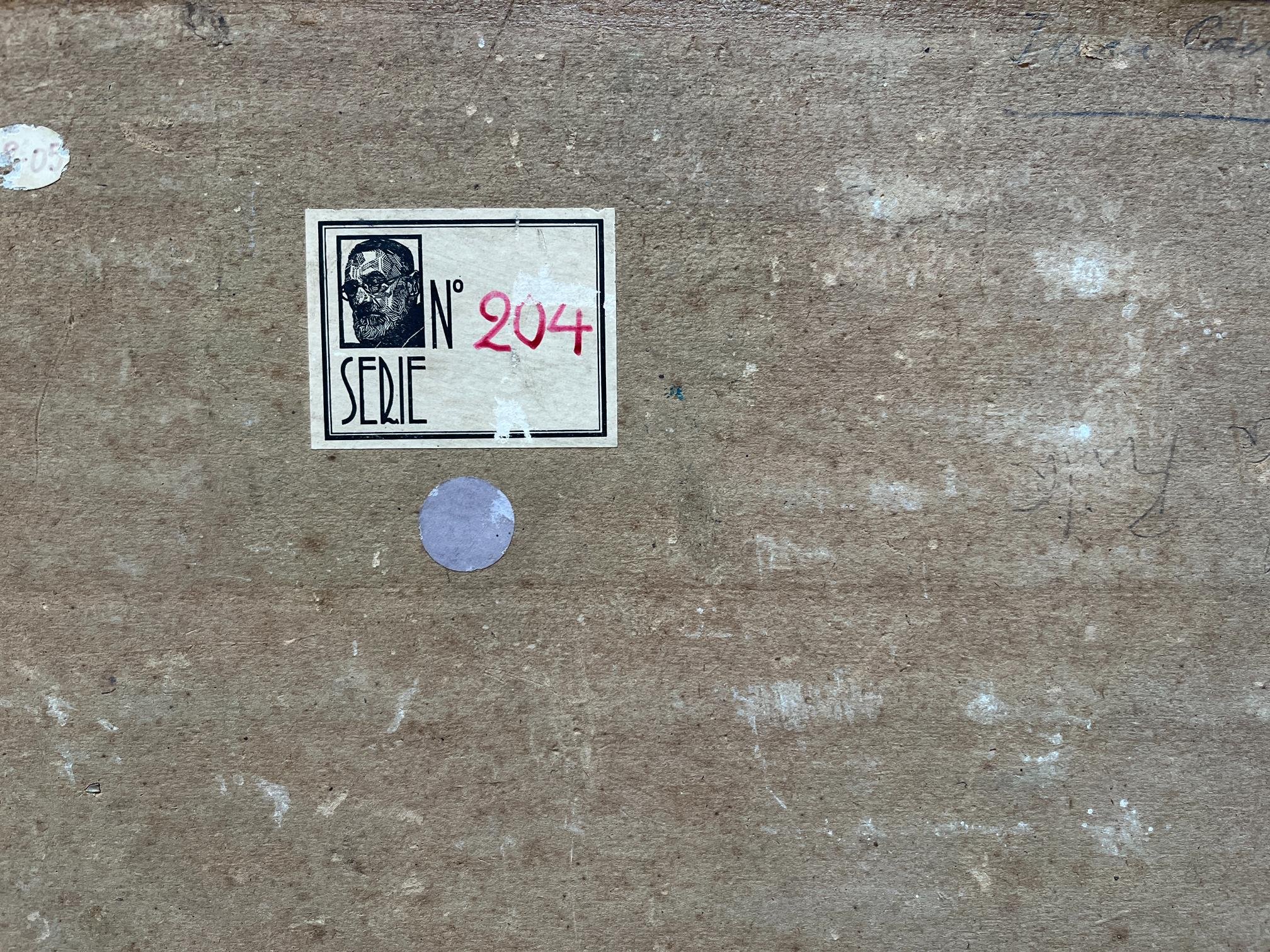 Firmado al dorso, con etiqueta del inventario del Arq. Herrera McLean “No. 204” y etiqueta color en color violeta relativa a la sucesión familiar del artista correspondiente a Margarita Figari Castro, hermana del artista