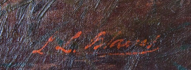 Óleo sobre tela, firmado abajo a la derecha “J. L. Blanes”. Medidas: 42 x 80 cm. Con su hermoso marco de época. Ex colección Jorge Alejandro Aznárez (1904 -1968), descendiente de la familia fundadora del primer ingenio azucarero de Uruguay y del balneario Bella Vista.