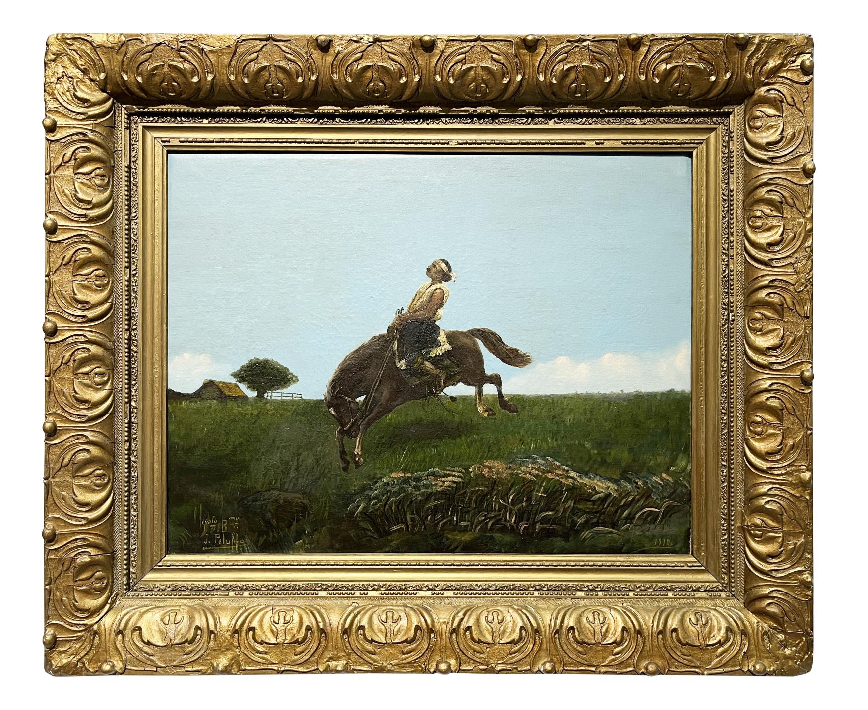 JUAN PELUFFO (escuela uruguaya, 1894-1957). «La doma.» Óleo sobre tela. Firmado abajo a la izquierda. Fechado «1912» abajo a la izquierda. 49 x 54 cm.