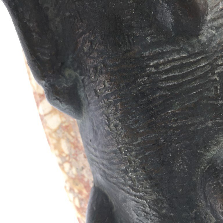MONCALVI, Sebastián Juan (escuela uruguaya, 1902-1974). Escultura en bronce pátina oscura. «Caballos.» 32 x 34 x 10 cm. Firmado en la base. Presentada en base de mármol.