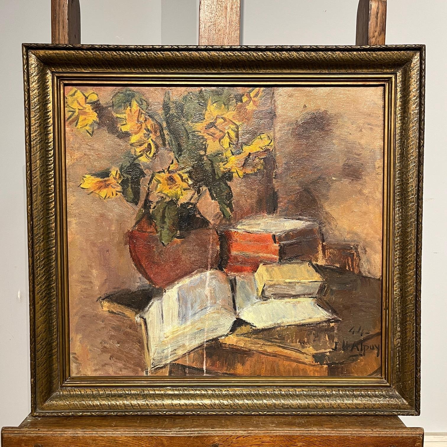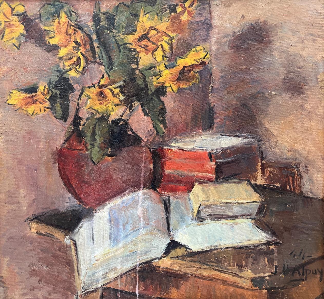 JULIO URUGUAY ALPUY (Escuela uruguaya, 1919-2009) Óleo sobre fibra «Naturaleza Muerta» Firmado y fechado «44» abajo a la derecha 53 x 57 cm