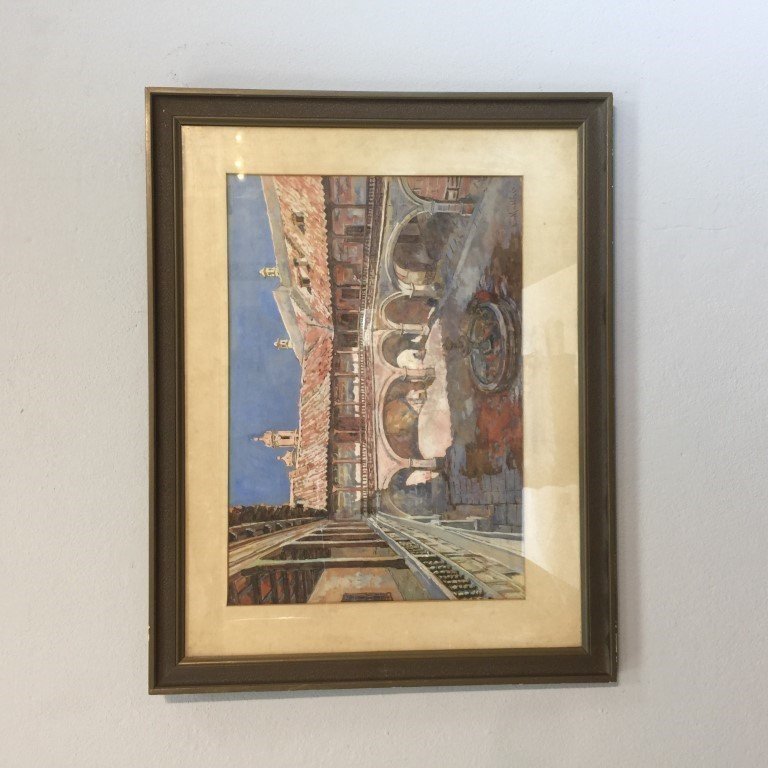 MATTHIS, Léonie (escuela rioplatense, 1883-1952). Acuarela sobre cartón. «Casa de la Moneda de Potosí.» Firmado abajo a la derecha.