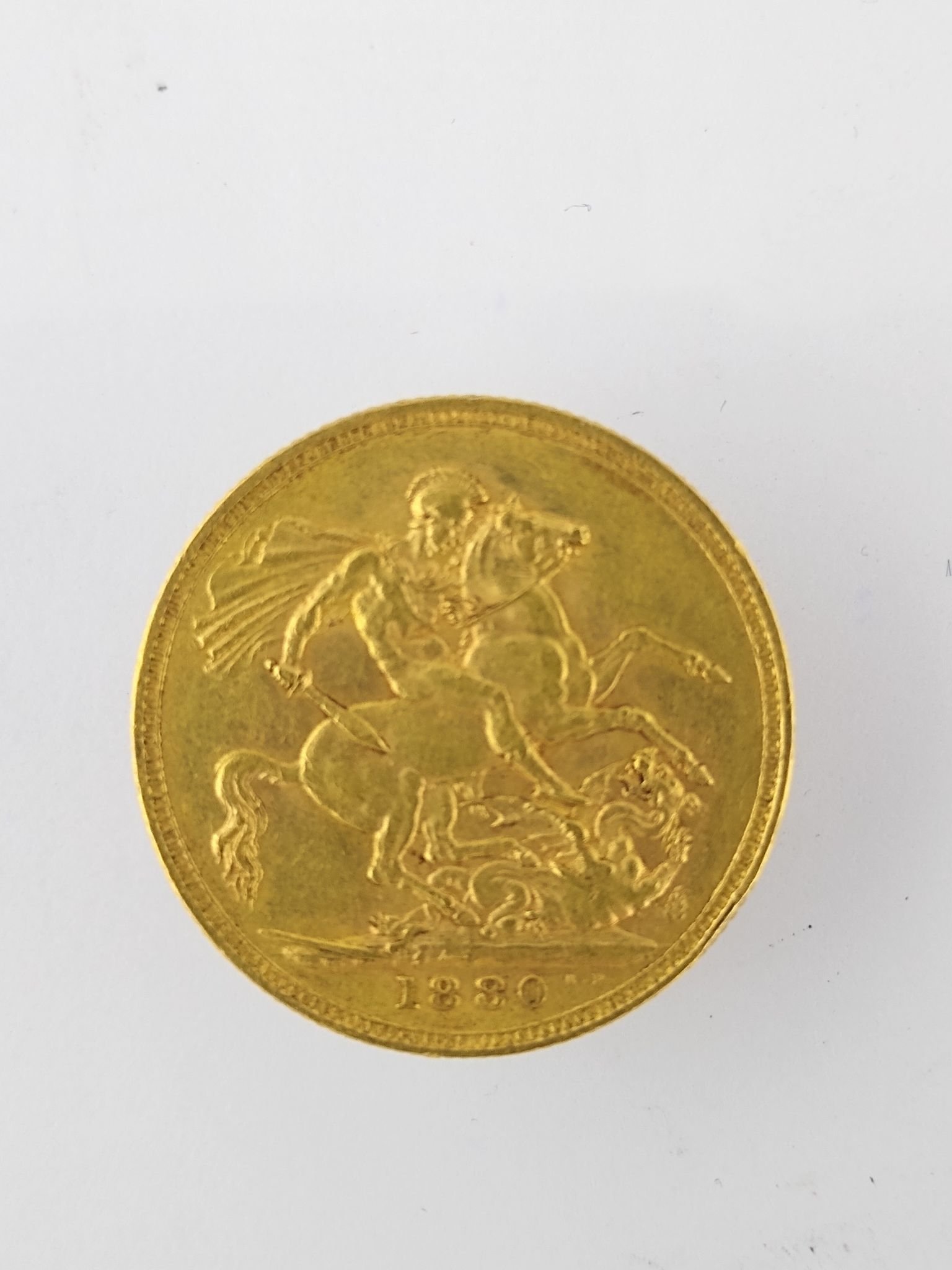 Moneda británica en oro denominación una libra esterlina del año 1880.